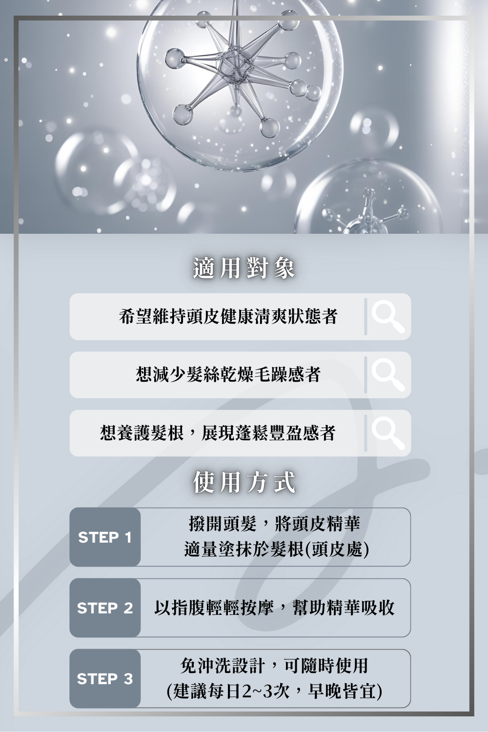調理頭皮環境,滋養毛髮,維持頭皮舒適