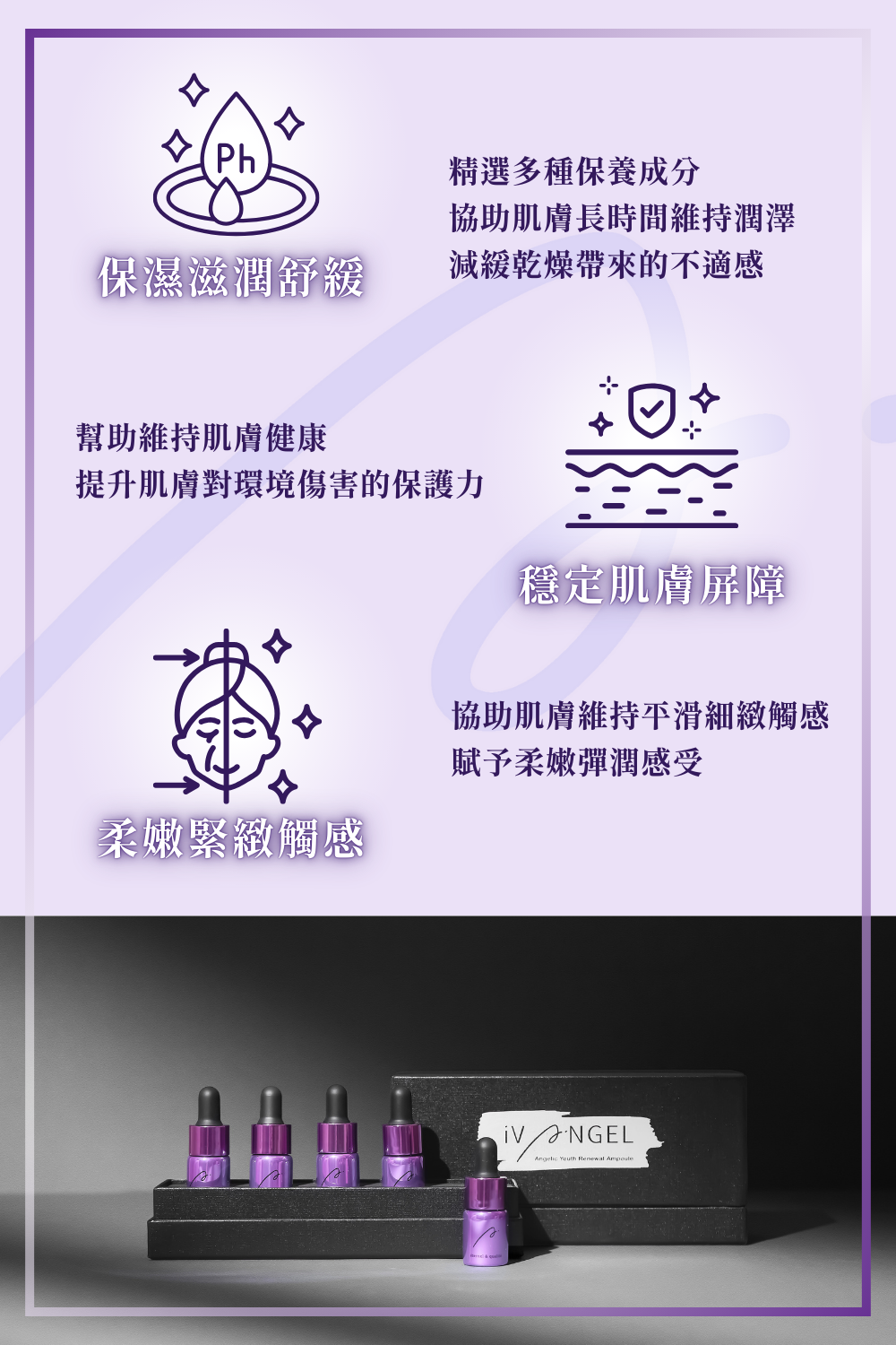 維持肌膚穩定與柔嫩感,展現自然光采。
